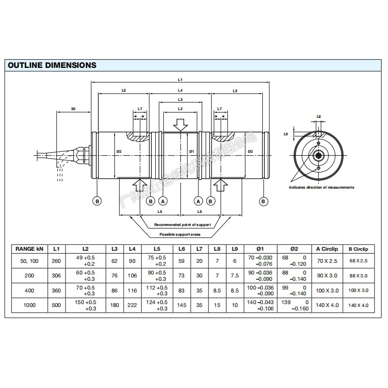 (1)容量范圍:50、100、200、400和1000千牛(11.2K、22.5K、45K、90K和225K磅)