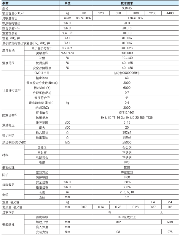 稱重傳感器相關(guān)型號(hào):SL415-110kg,SL415-220kg,SL415-550kg,SL415-1100kg,SL415-2200KG,SL415-4400kg,SL415-1.1T,SL415-2.2T,SL415-4.4T。