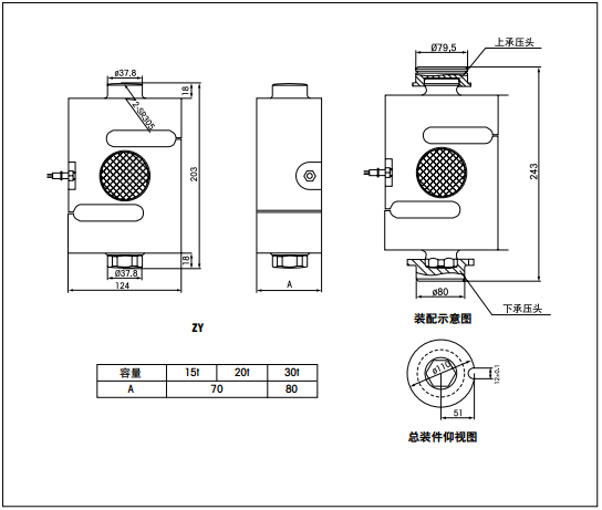 稱(chēng)重傳感器相關(guān)型號(hào):ZY-15T, ZY-20T, ZY-30T