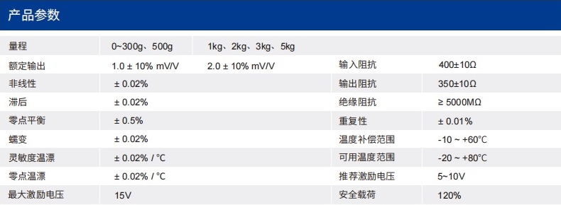 四、LZ4M(L)稱重傳感器技術(shù)參數(shù)