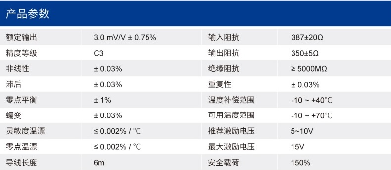 四、DZXL-XS稱重傳感器技術(shù)參數(shù)