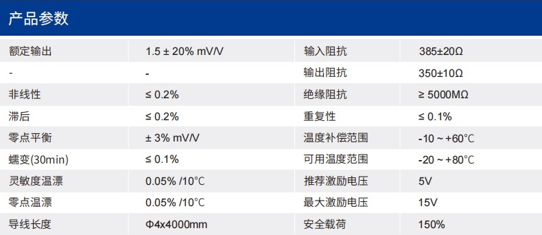 四、CR140力傳感器技術(shù)參數(shù)