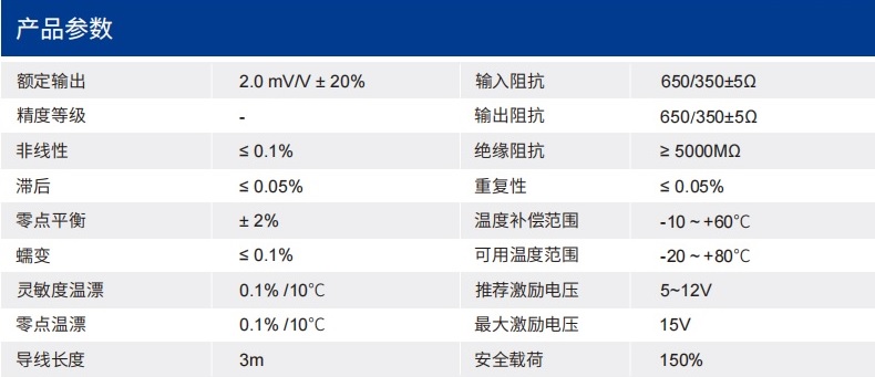 四、CR164-B拉壓力傳感器技術(shù)參數(shù)