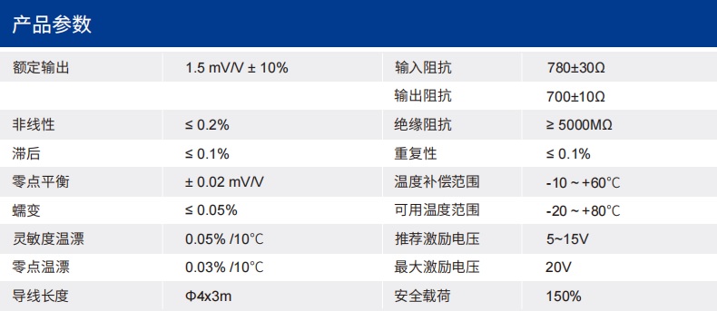 四、CR169-B力傳感器技術(shù)參數(shù)