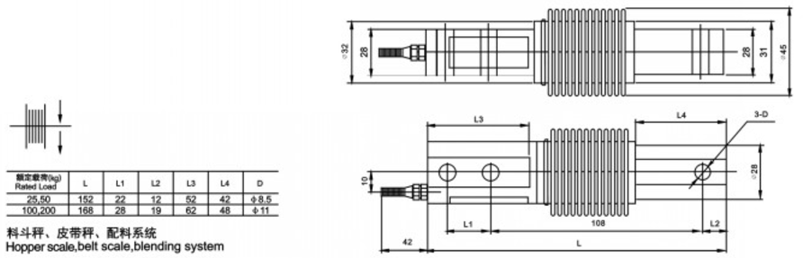 波紋管稱重傳感器可承受拉、壓兩種受力形式??蛊d、抗疲勞能力強(qiáng)。對惡劣的工況環(huán)境可采用不銹鋼波紋管焊接密封。適用于電子秤、皮帶秤、料斗秤及其它力值的測量與控制。