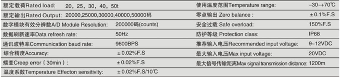 柯力ZSNC-D系列數(shù)字稱重傳感器技術參數(shù)