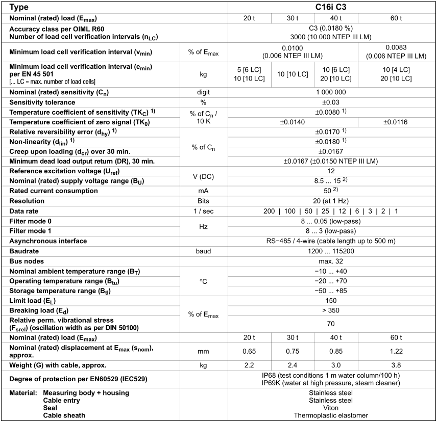 C16IC3/40t稱重傳感器,HBM稱重傳感器