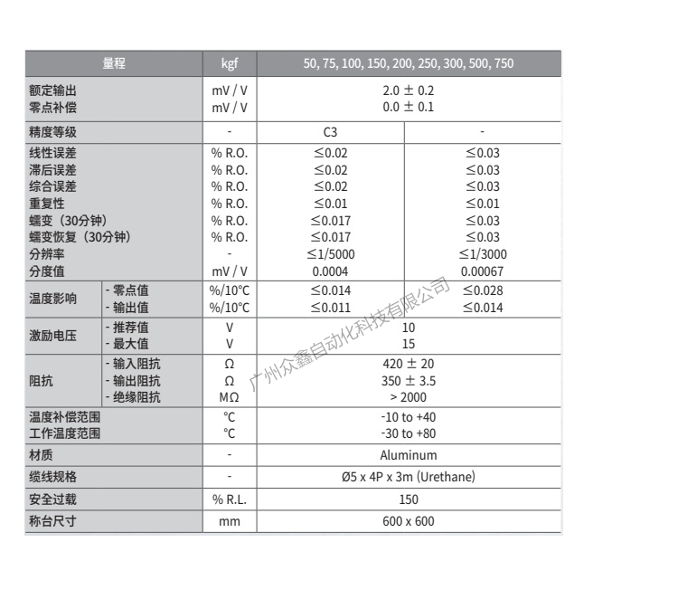 五、韓國凱士CAS品牌 BCM-750L稱重傳感器技術(shù)參數(shù)