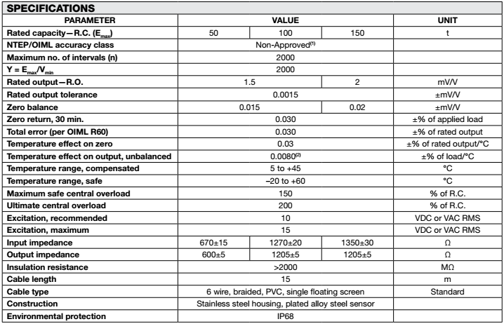 Tedea-Huntleigh特迪亞122系列技術(shù)指標(biāo)