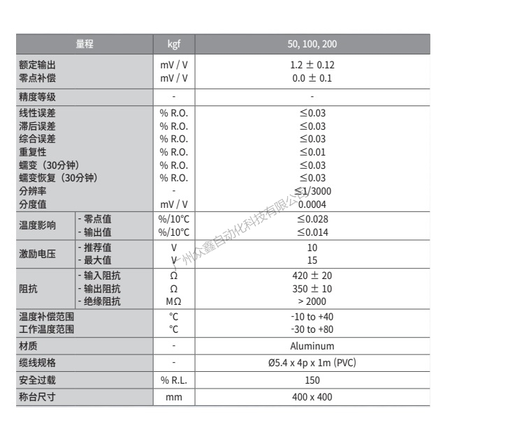 五、韓國凱士CAS品牌 BCP-200L稱重傳感器技術(shù)參數(shù)