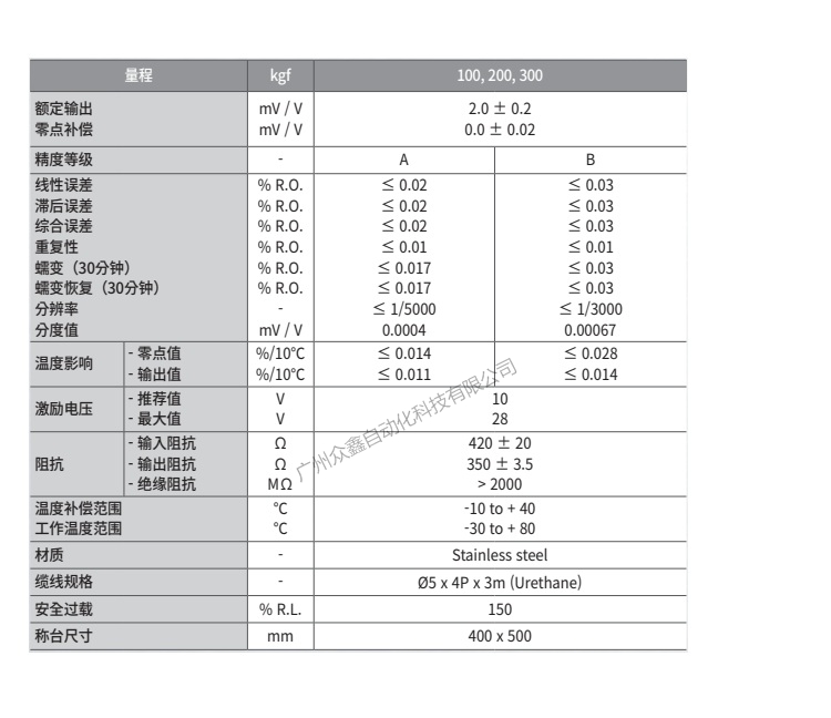 五、韓國(guó)凱士CAS品牌 BCEP-300L-EXP稱(chēng)重傳感器技術(shù)參數(shù)