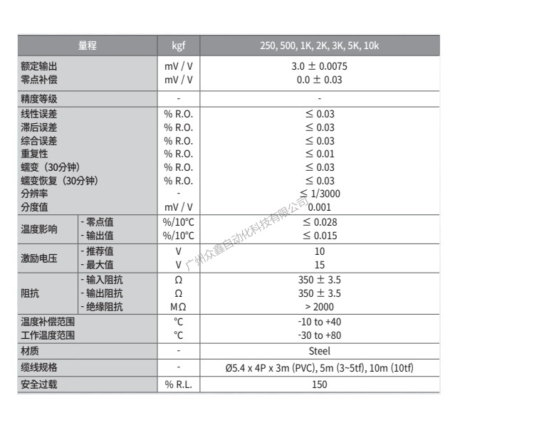 產(chǎn)品量程:250kgf,500kgf,1K,2K,3K,5K,10K