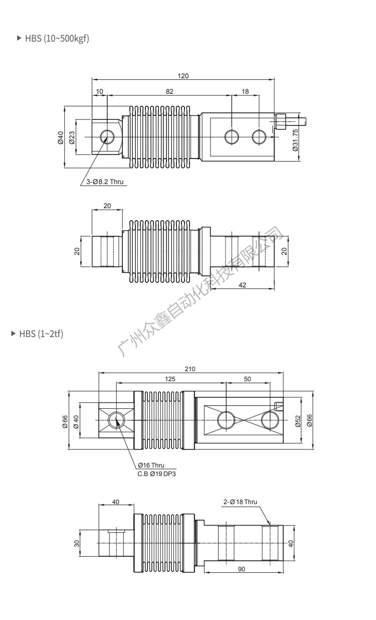 四、韓國凱士CAS品牌 HBS-2T稱重傳感器產(chǎn)品尺寸