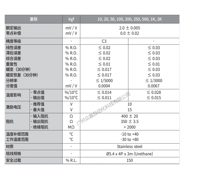 五、韓國凱士CAS品牌 HBS-2T稱重傳感器技術(shù)參數(shù)