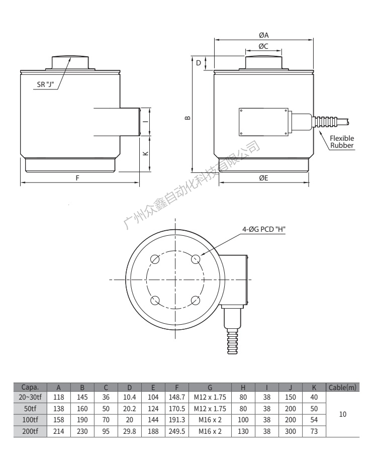 四、韓國凱士CAS品牌 HC-200T稱重傳感器產(chǎn)品尺寸