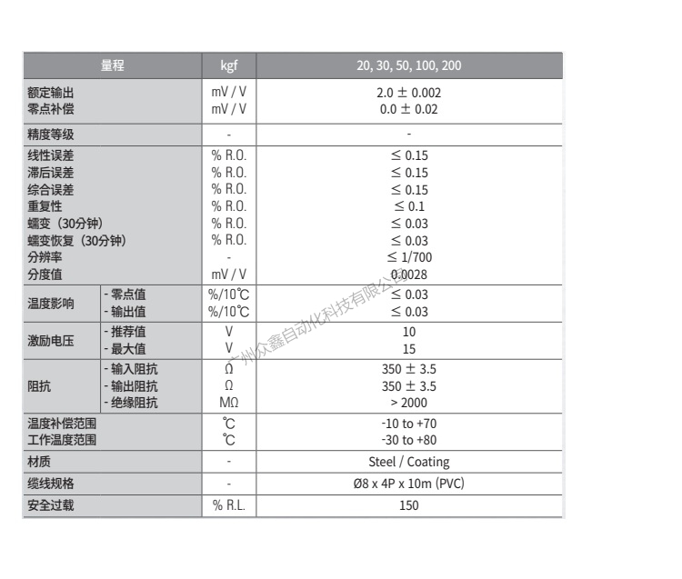 五、韓國凱士CAS品牌 HC-200T稱重傳感器技術參數(shù)