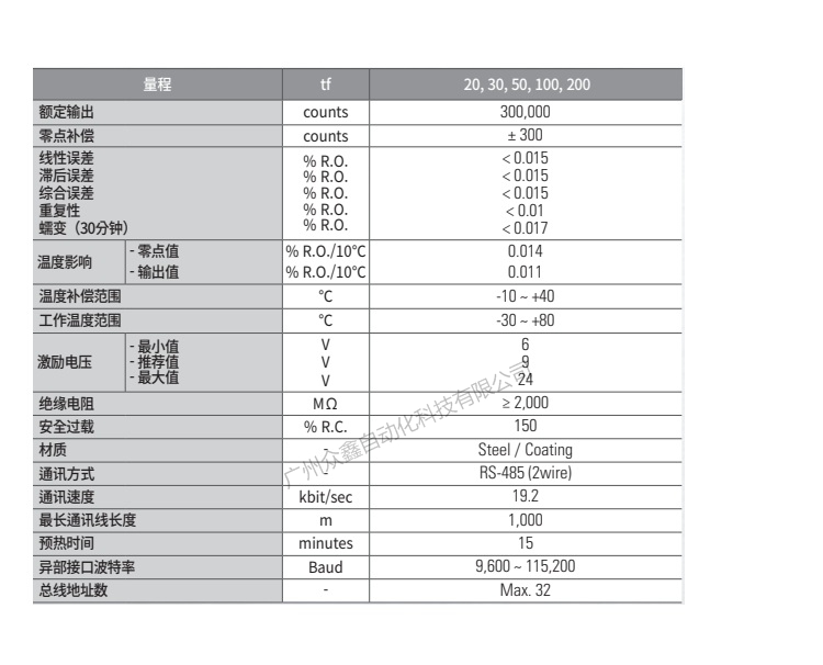 五、韓國(guó)凱士CAS品牌 HC-200D稱重傳感器技術(shù)參數(shù)