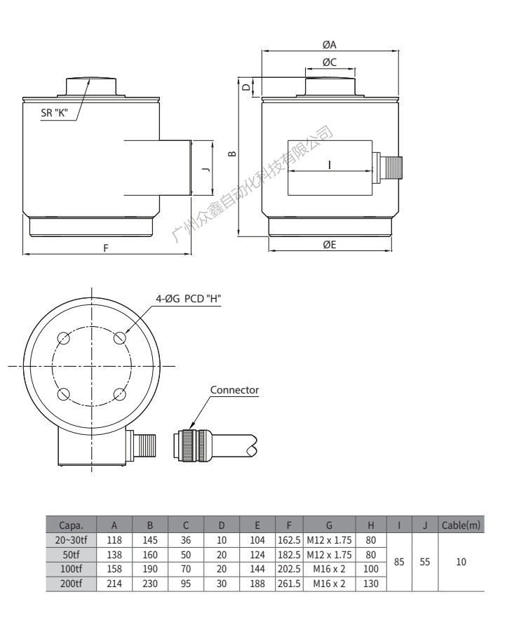 四、韓國(guó)凱士CAS品牌 HC-200D稱重傳感器產(chǎn)品尺寸