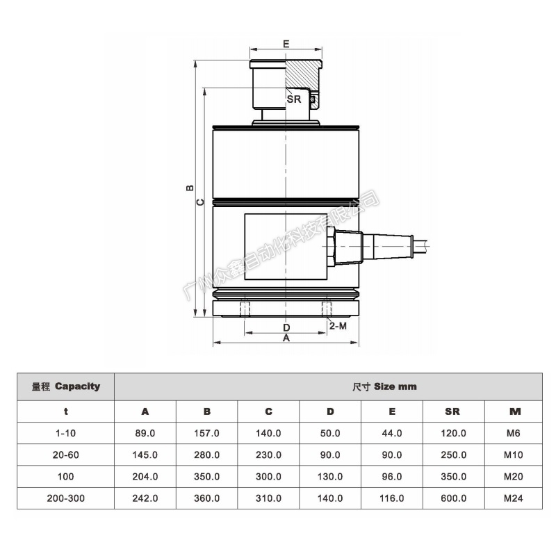 三、CG-1-1T稱重傳感器產(chǎn)品尺寸