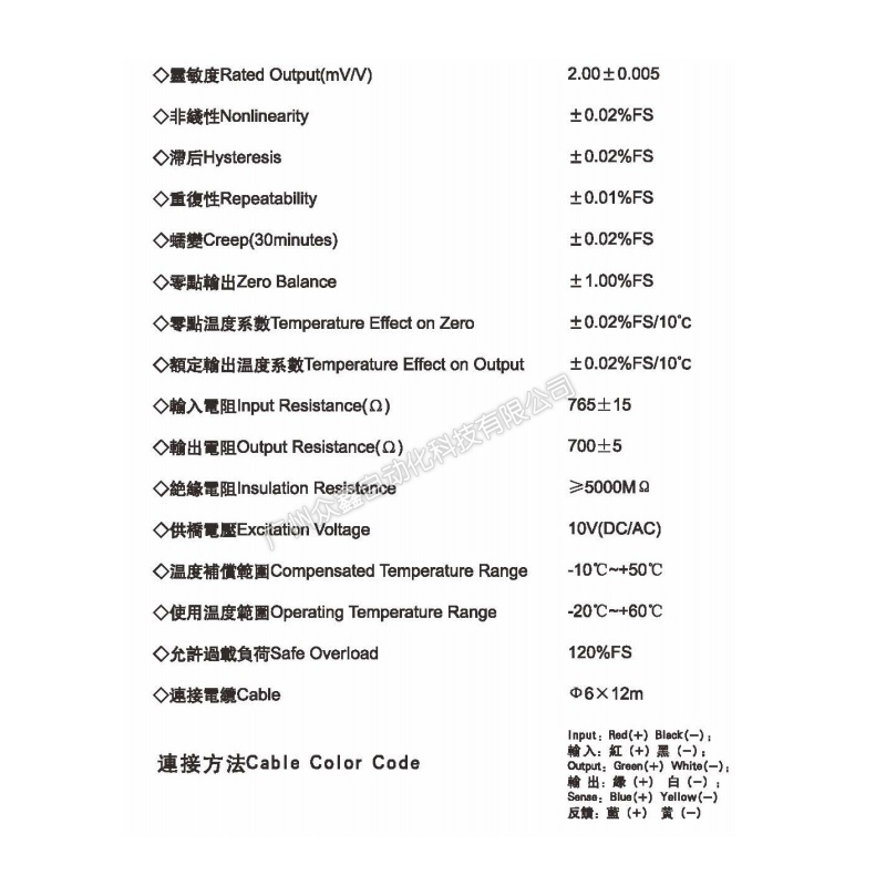 四、CP-3-25T稱重傳感器技術(shù)參數(shù)