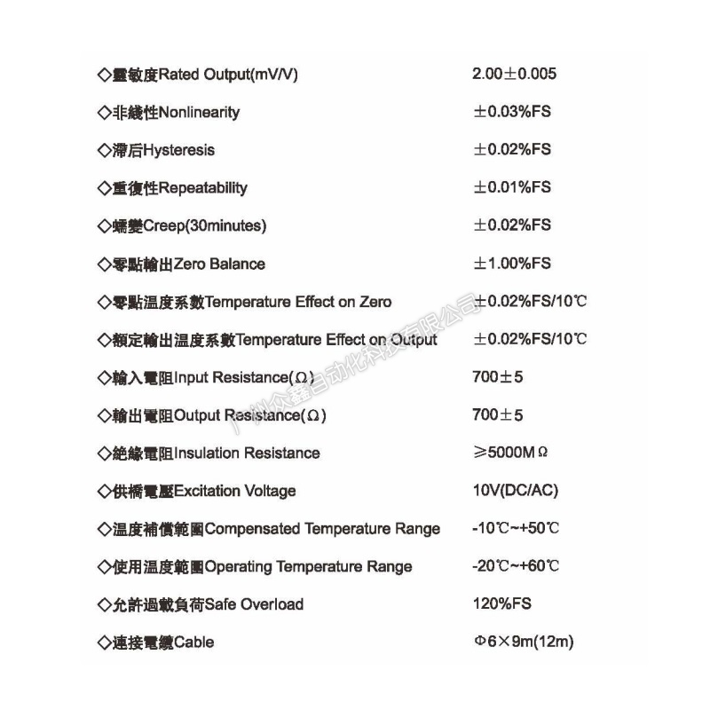 四、CP-4-30T稱重傳感器技術參數(shù)