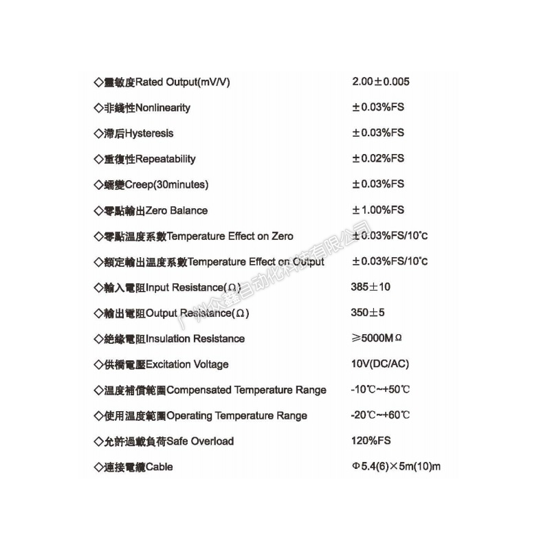 四、ET-3-100kg稱重傳感器技術參數