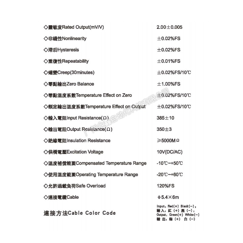 四、ET-8-12T稱重傳感器技術(shù)參數(shù)