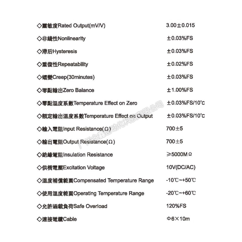 四、GF-3-25Klb稱重傳感器技術(shù)參數(shù)