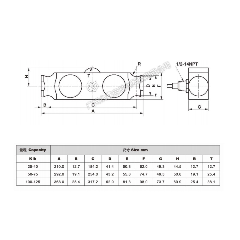 三、GF-3-40Klb稱(chēng)重傳感器產(chǎn)品尺寸