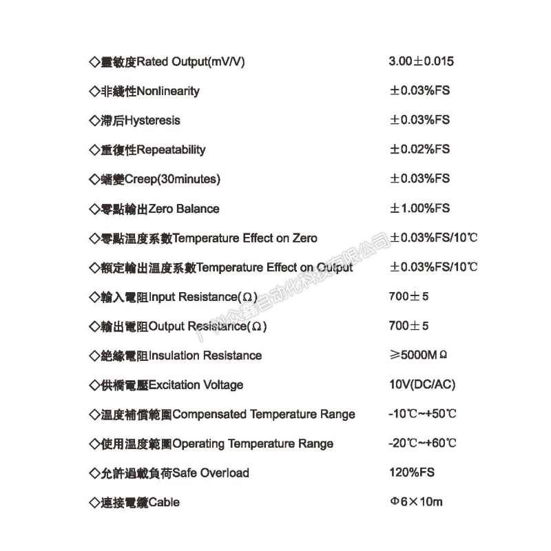 四、GF-4-25Klb稱重傳感器技術(shù)參數(shù)