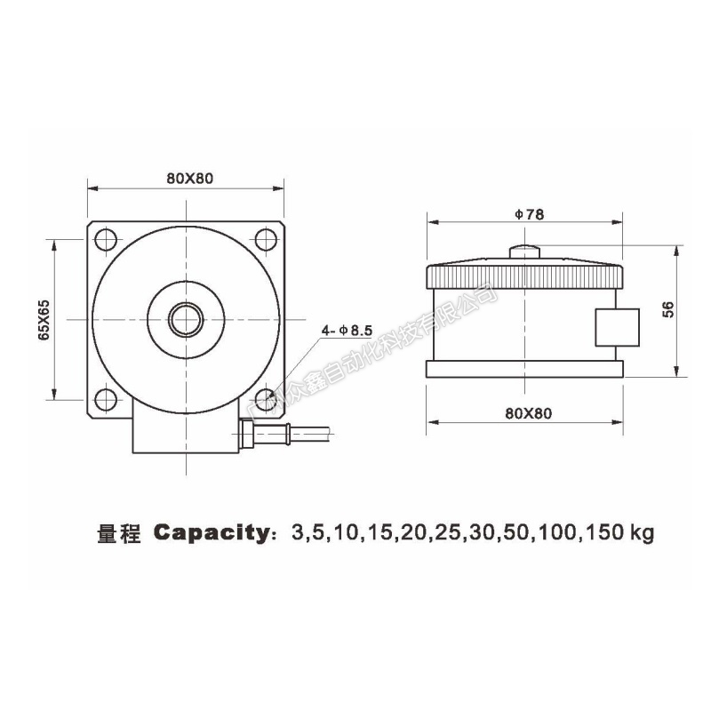 三、PE-9-3kg稱重傳感器產(chǎn)品尺寸