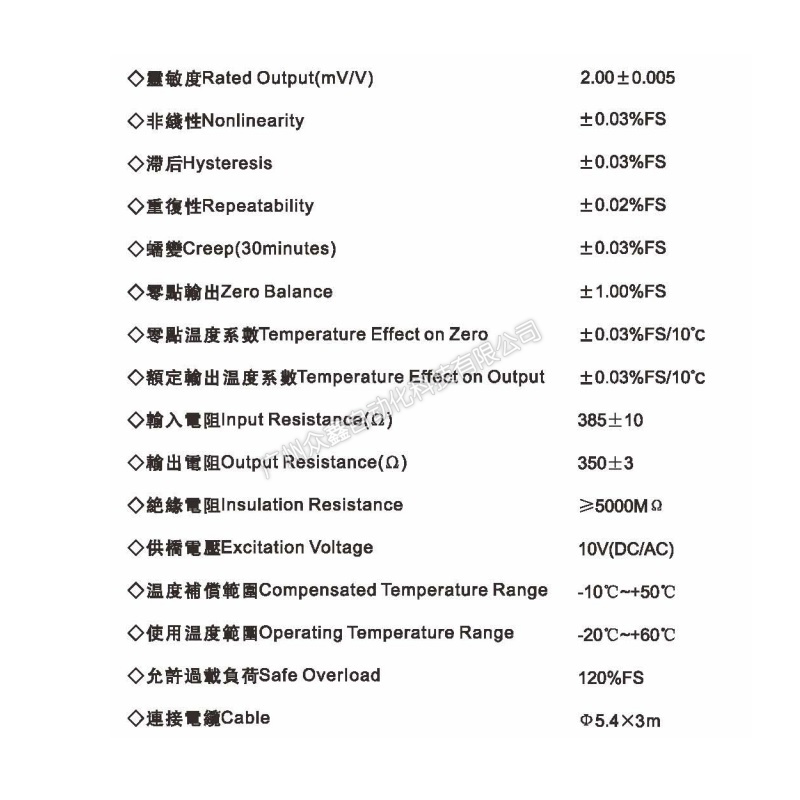 四、PE-9-3kg稱重傳感器技術(shù)參數(shù)