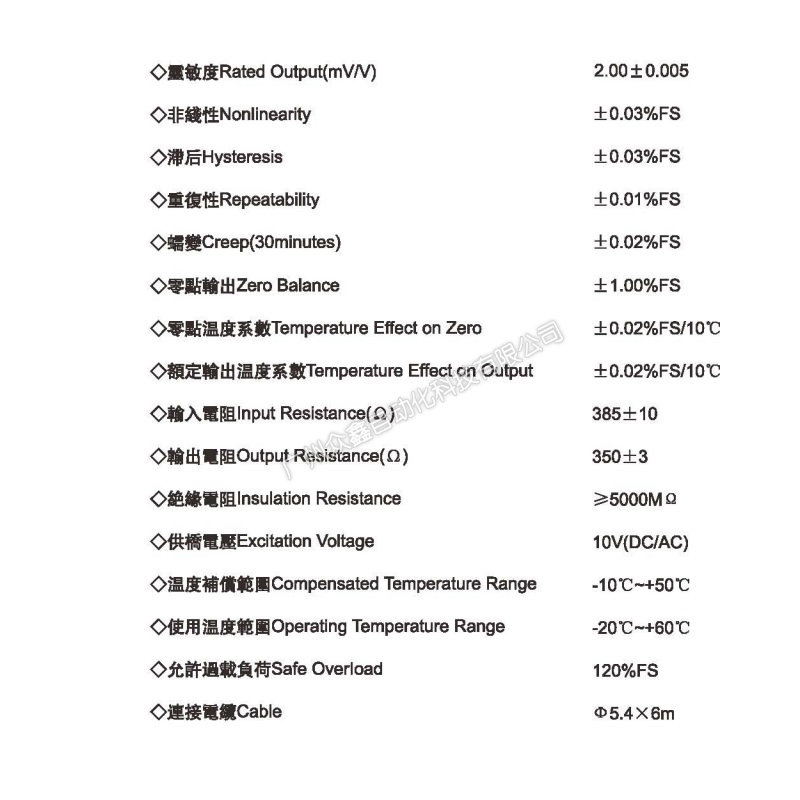 四、PE-15-750kg稱重傳感器技術(shù)參數(shù)