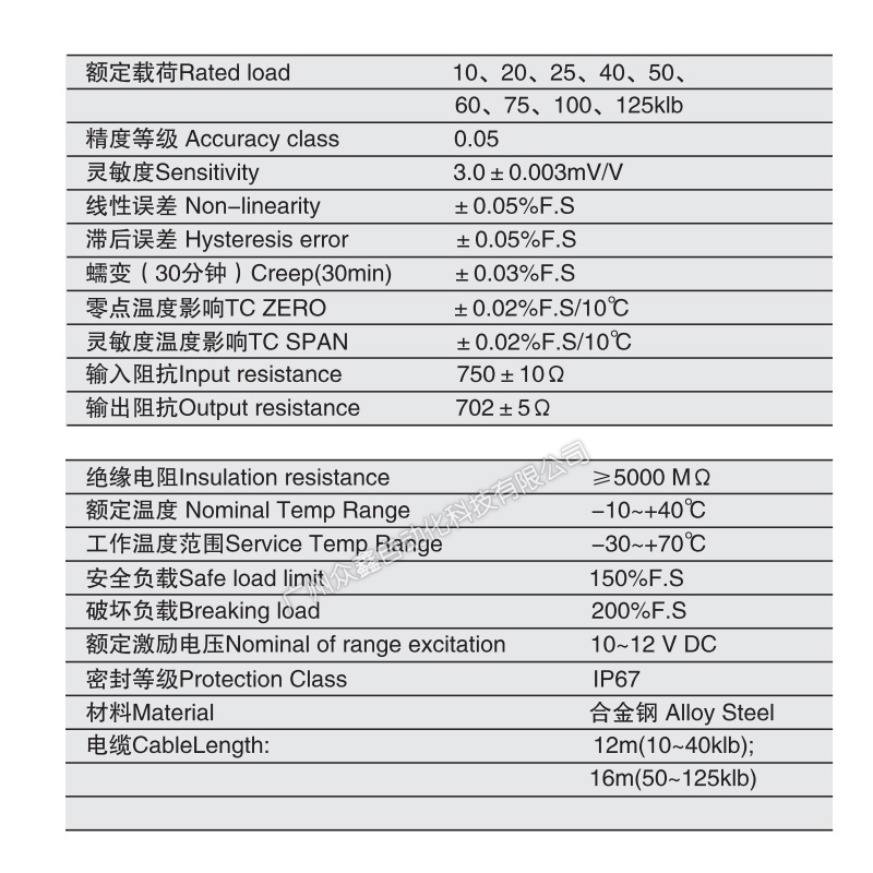 (5)電纜長度:12m(10~40klb);16m(50~125klb)