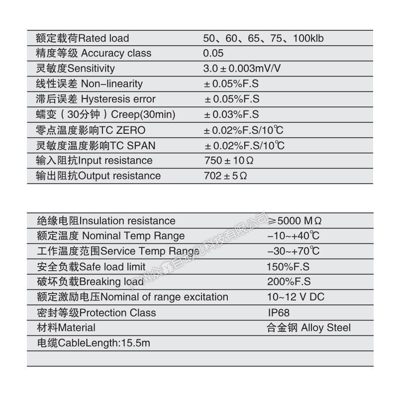 三、QSEF-50klb稱重傳感器產(chǎn)品參數(shù)
