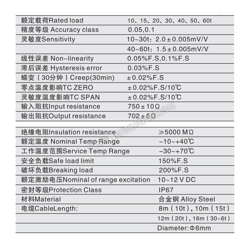 三、QSK-60T稱重傳感器產(chǎn)品參數(shù)