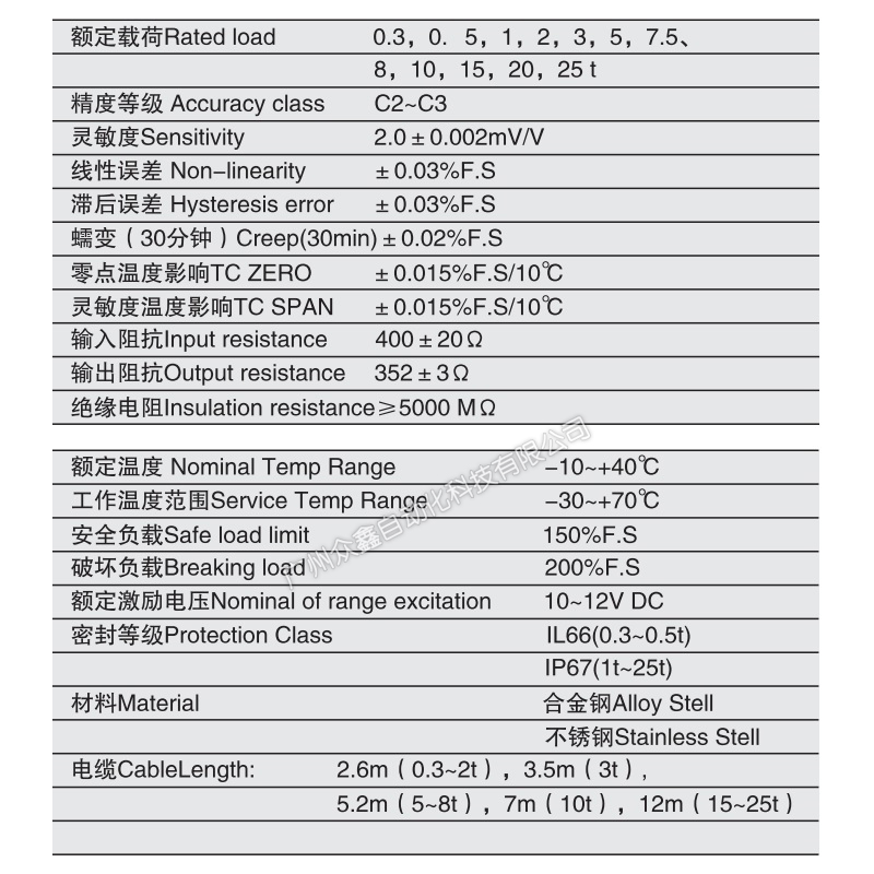 三、SB-1T稱重傳感器產(chǎn)品參數(shù)
