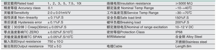 寧波柯力 1-YBS系列技術(shù)數(shù)據(jù)