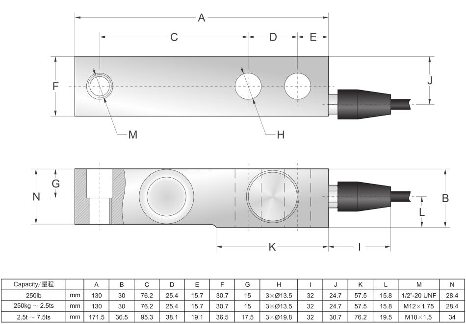 ▲量程可選:250lb,250kg,500kg,750kg,1000kg,1500kg,2000kg,2500kg,5000kg,7500kg