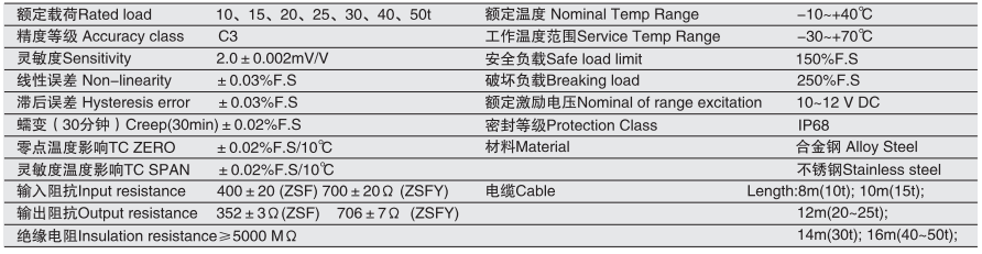 稱重傳感器相關型號: ZSF-10t, ZSF-15t,ZSF-20t, ZSF-25t, ZSF-30t, ZSF-40t, ZSF-50t