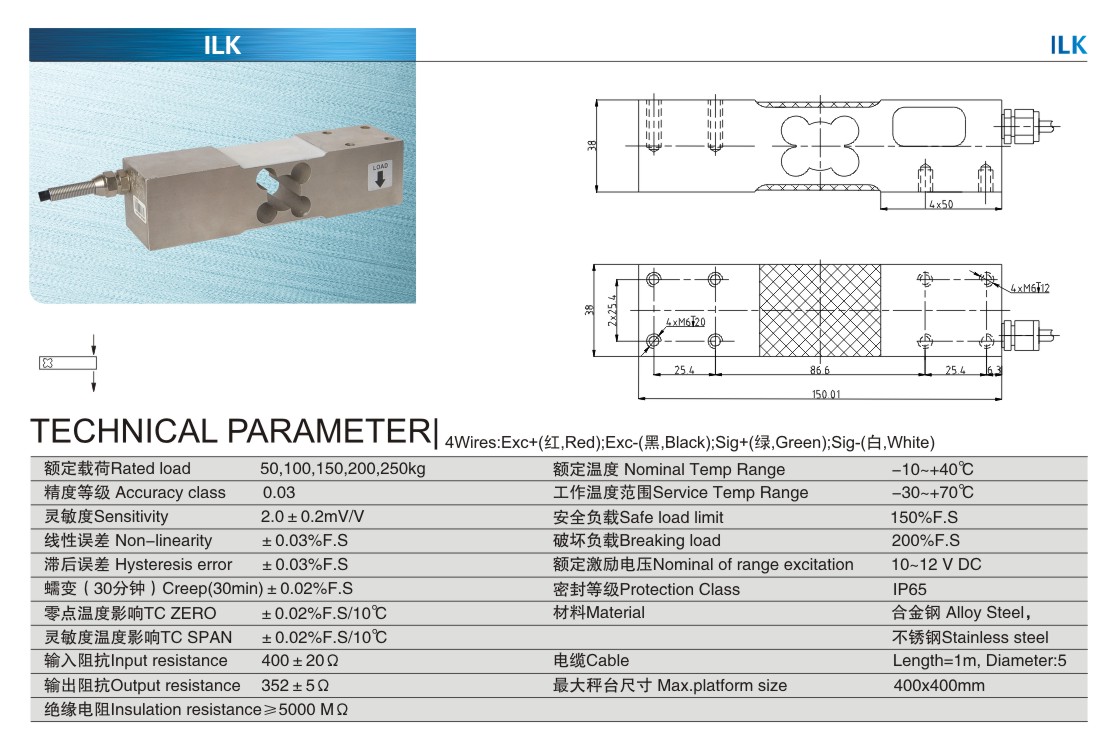 稱重傳感器相關(guān)型號: ILK-50kg, ILK-100kg,ILK-150kg, ILK-200kg, ILK-250kg