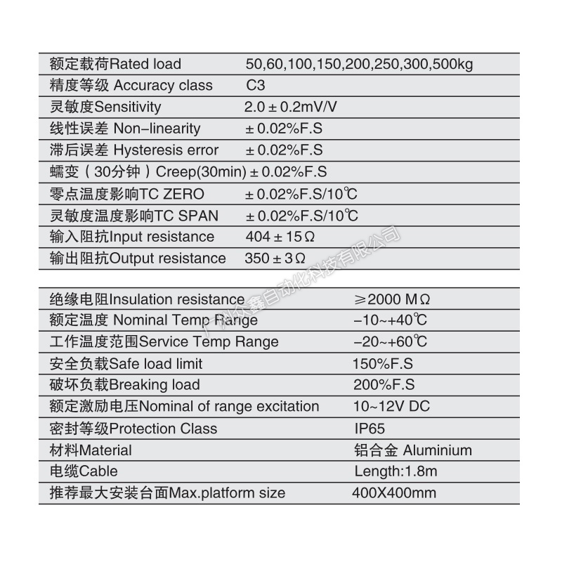 五、AMI稱重傳感器技術(shù)參數(shù)