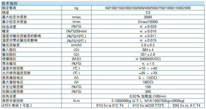 中航電測(cè)ZEMIC傳感器B6F系列產(chǎn)品參數(shù):