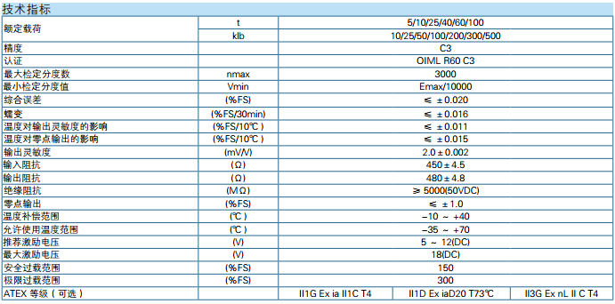 中航電測(cè)ZEMIC傳感器BM14A系列所有量程如下: