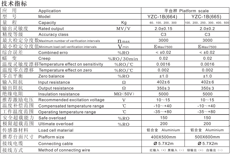 YZC-665-100kg, YZC-665-200kg, YZC-665-250kg, YZC-665-300kg, YZC-665-400kg, YZC-665-500kg