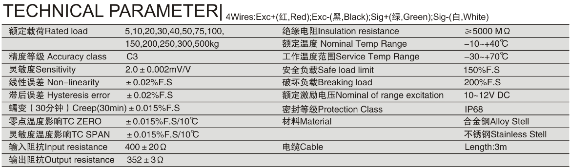 HSX-SS系列稱重傳感器技術(shù)參數(shù)