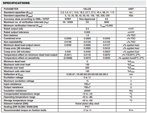 美國Vishay Revere稱重傳感器5103系列產(chǎn)品參數(shù):