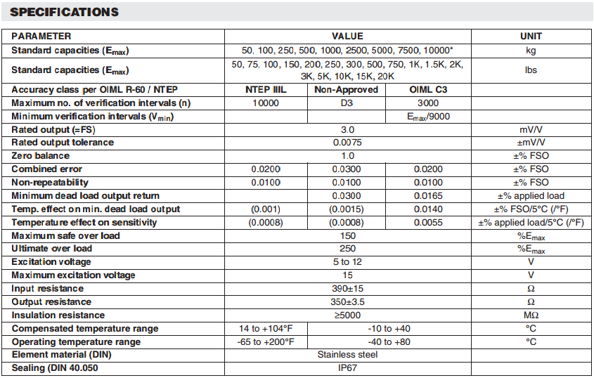 美國(guó)Vishay Revere稱重傳感器9363系列產(chǎn)品參數(shù):