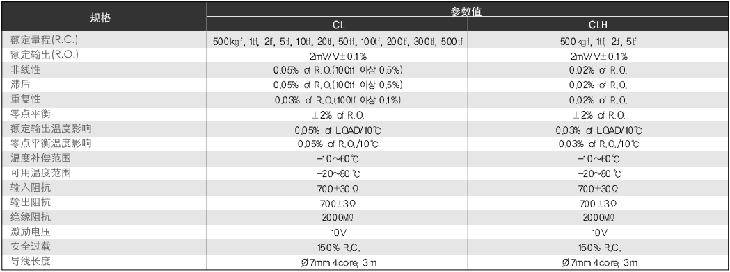CL稱(chēng)重傳感器技術(shù)指標(biāo)