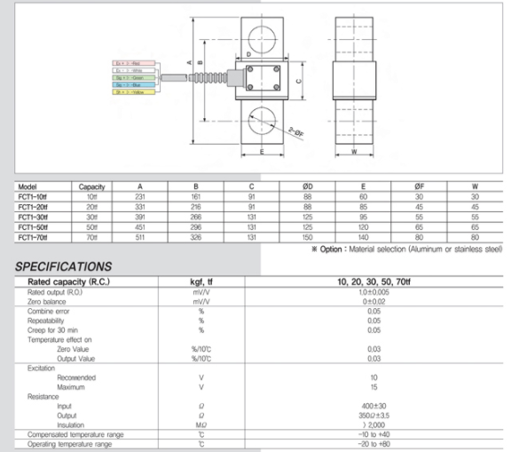 :FCT1-10T,FCT1-20T,FCT1-30T,FCT1-50T,FCT1-70T。韓國Fine FCT1-10T稱重傳感器是